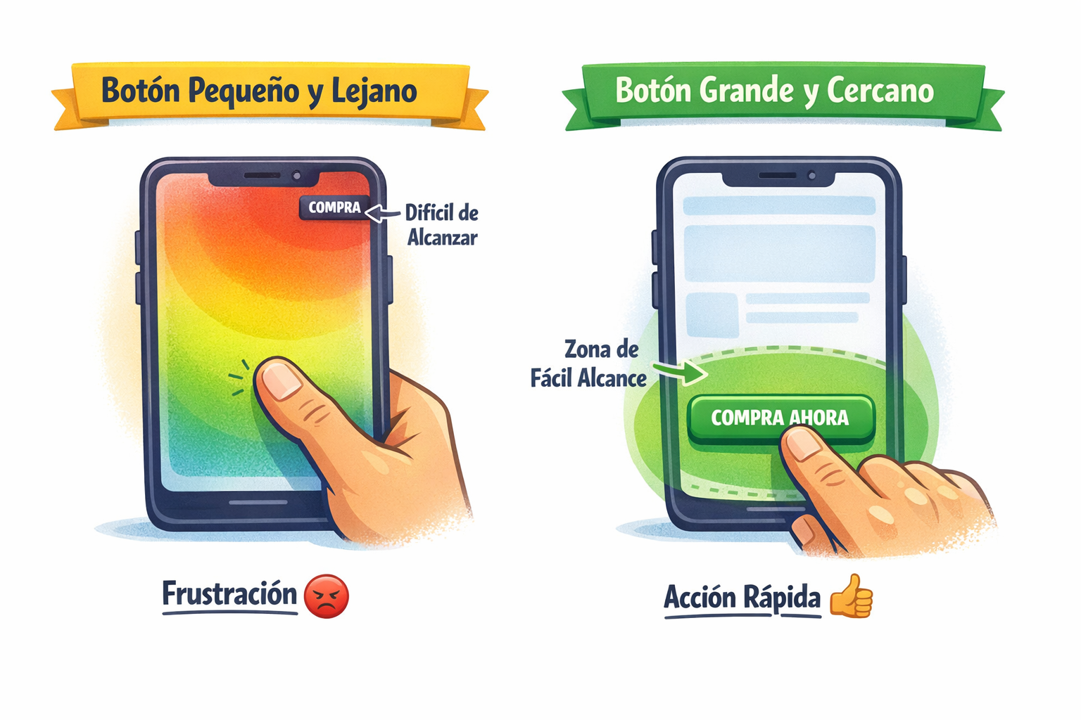 Y cuando ya sepas qué botón es el importante, aplica la Ley de Fitts: hazlo fácil de pulsar. Un botón minúsculo es una invitación directa a la frustración; un botón grande, visible y bien ubicado es, sencillamente, amor por el usuario.